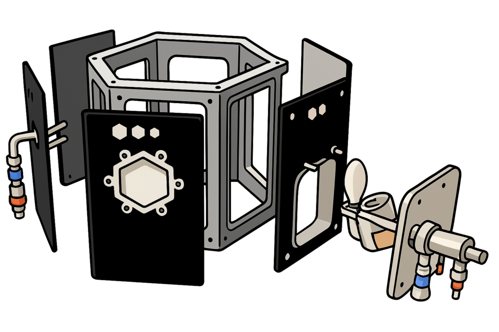 The HEX’s ability to be quickly reconfigured at low additional expense allows the system to provide simple thin film training on a reproducible and recognisable platform for various deposition/coating techniques ranging from sample preparation for surface analysis to e-beam, sputtering, thermal, organics (for OLED research) and a range of other thin film deposition techniques.