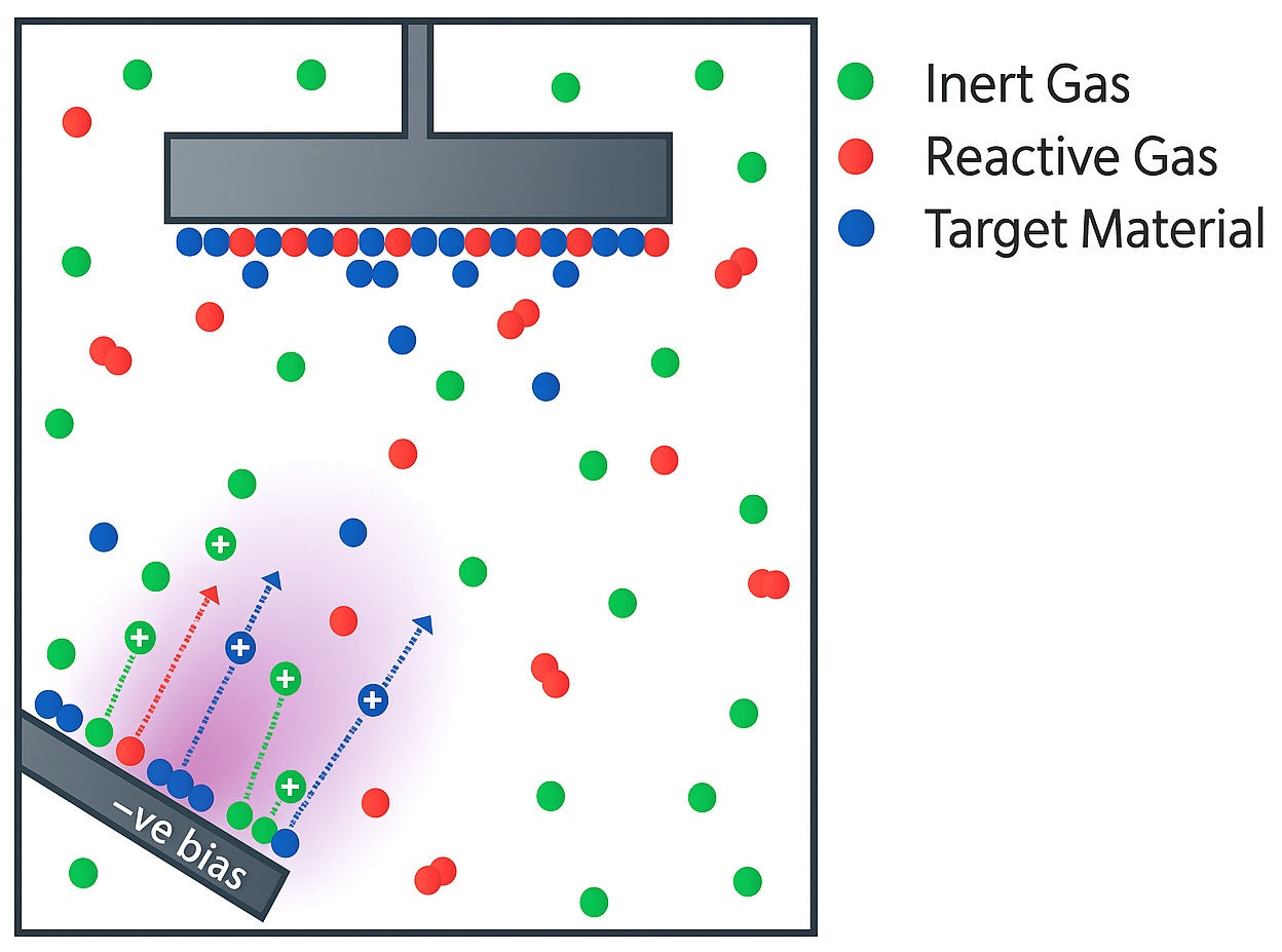 - Reactive Gas: A gas like O₂, N₂, or CH₄ is added to the chamber.